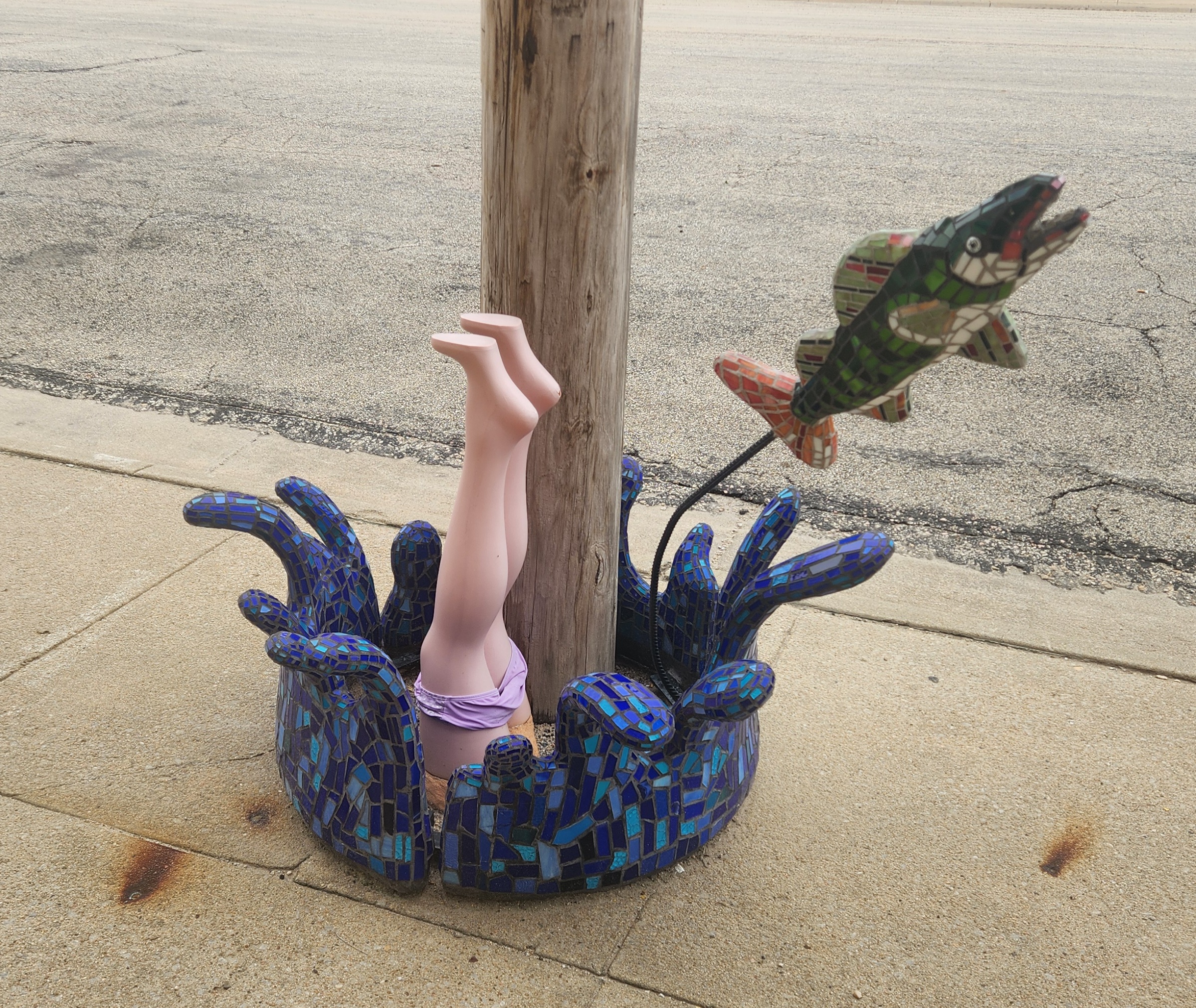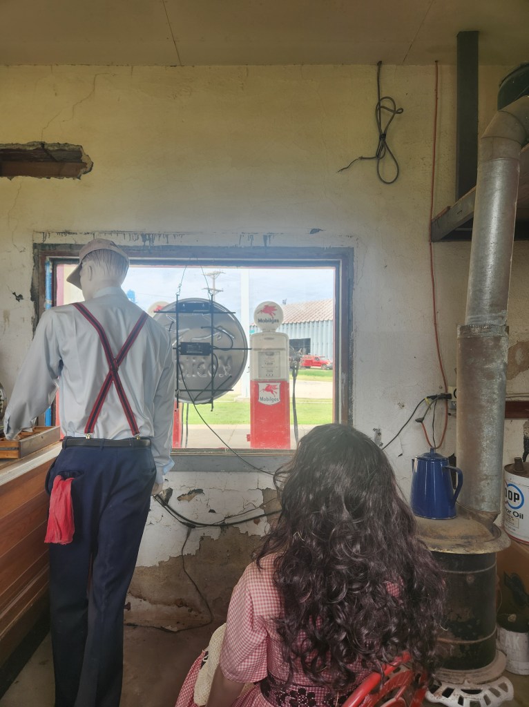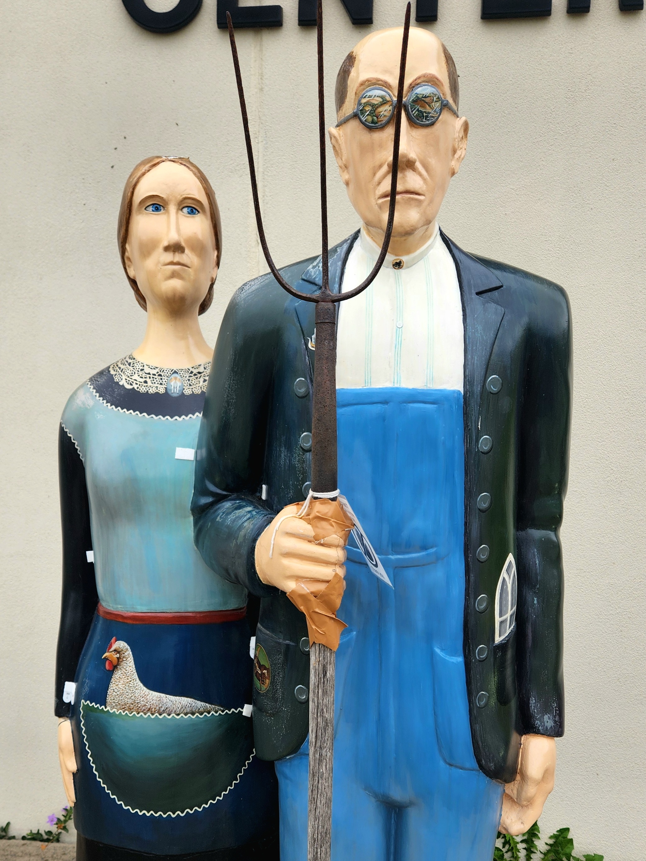 More gravel roads took me winding through the Iowa countryside over the Cry Baby bridge, the site is purported to be haunted and lore telling that you can hear the cries of a baby that was thrown off the bridge, and up to Mars Hill church. Mars Hill is the oldest log cabin church east of the Mississippi and was used as a stop on the underground railroad. Then because I was in the area, I decided I needed to visit Eldon, the site of the house in Grant Wood’s American Gothic painting. The house being located near the patchwork of fields in the painting.