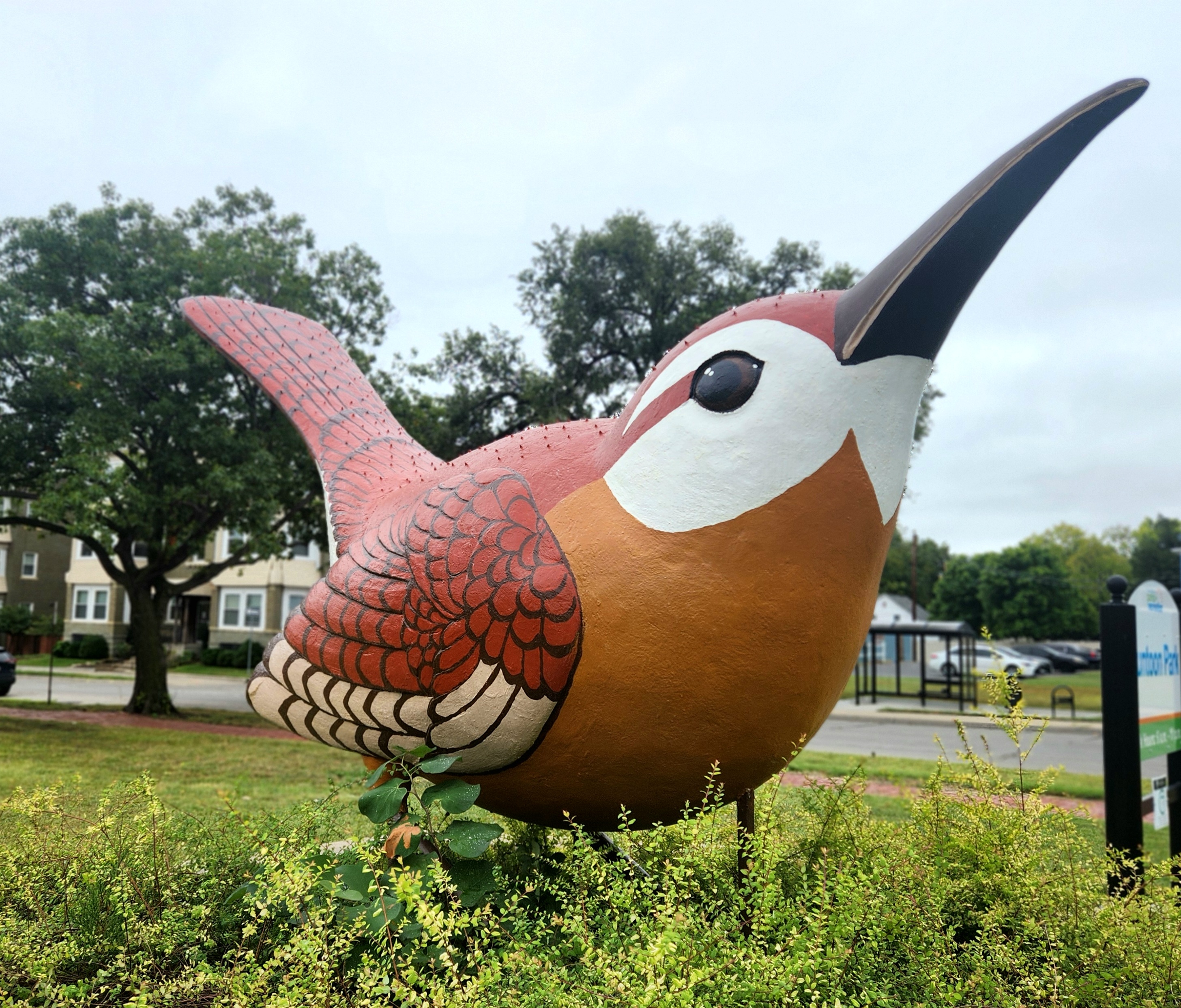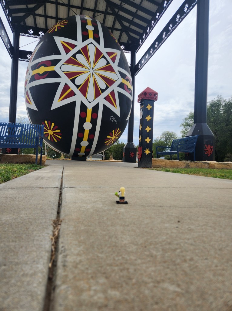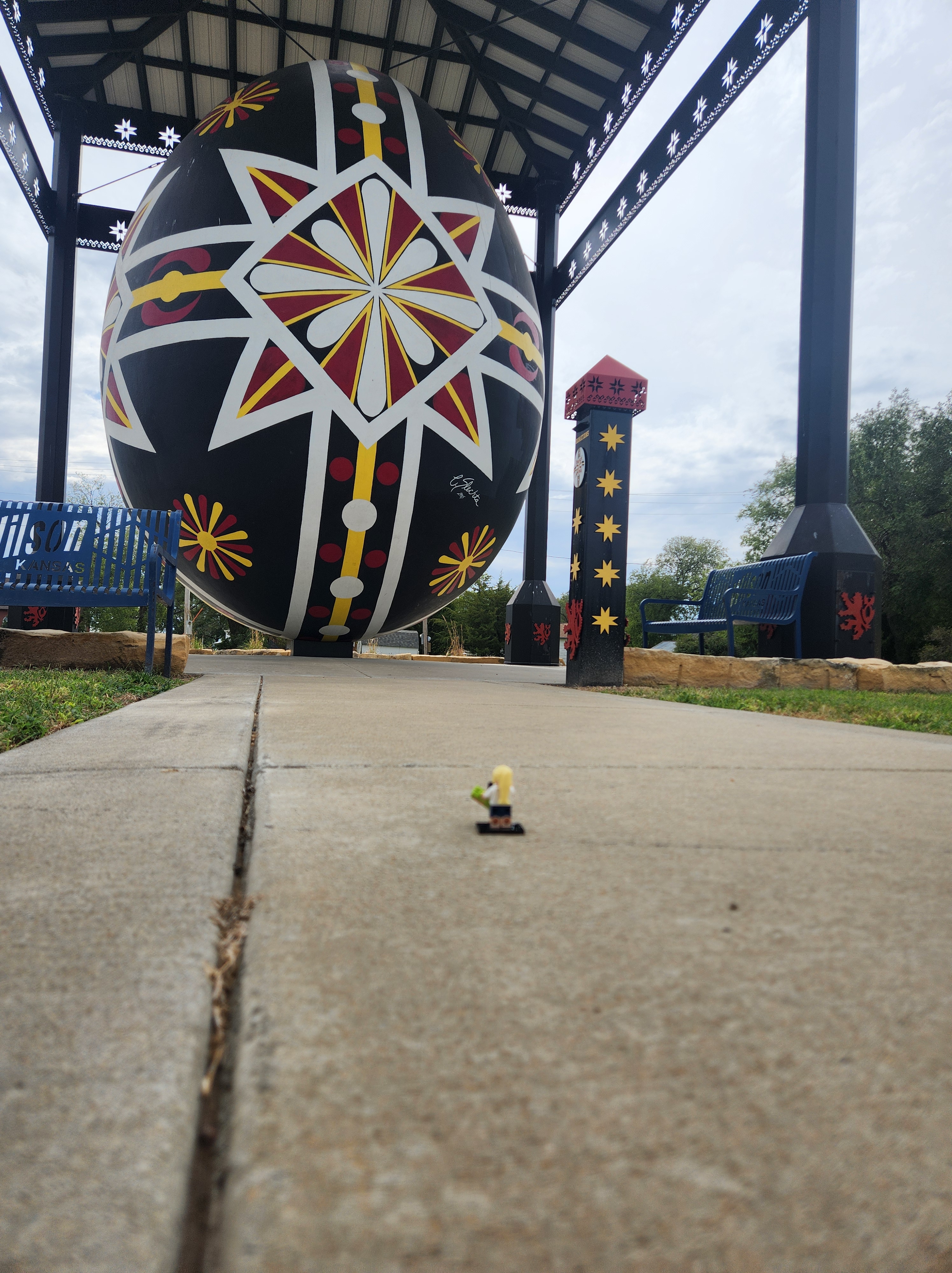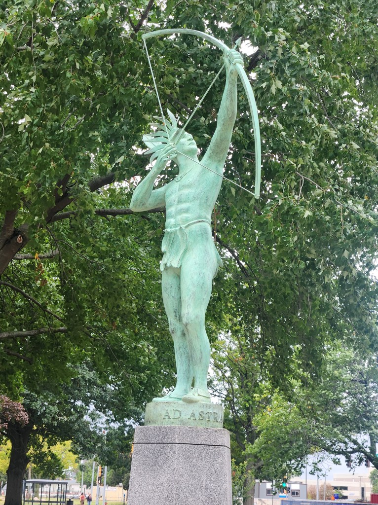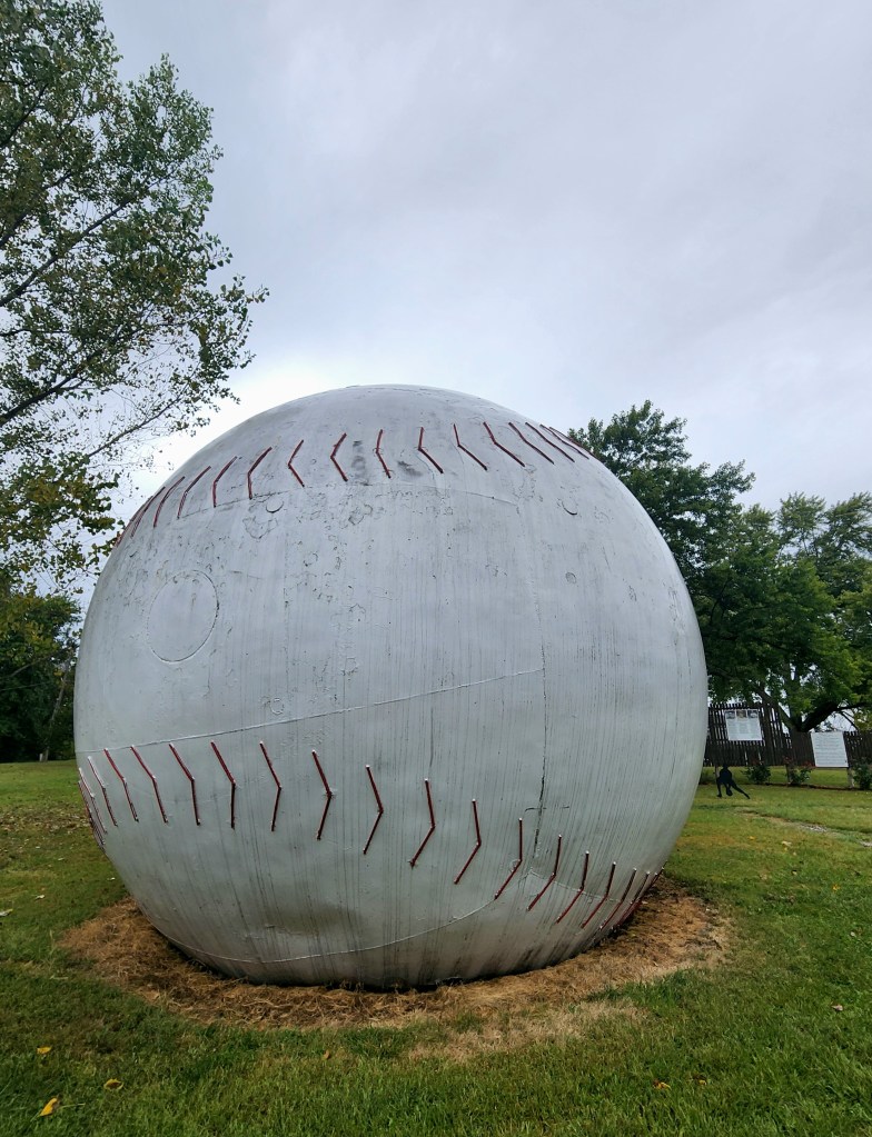 In Topeka, I admired the locally famous giant wren statue, went on a search for a statue of Dr. Still, the founder of osteopathy, that is no longer there, and took a quick walk in the damp and chilly air around the capitol building admiring statues of Lincoln, Ad Astera (the Indian atop the capitol building), and General Eisenhower. Leaving I-70 for good this time, I headed northeast. A combination of two-lane and gravel roads brought me to Muscotah, home of the World’s Largest Baseball, a watertower turned into a tribute to Jim Tinker.