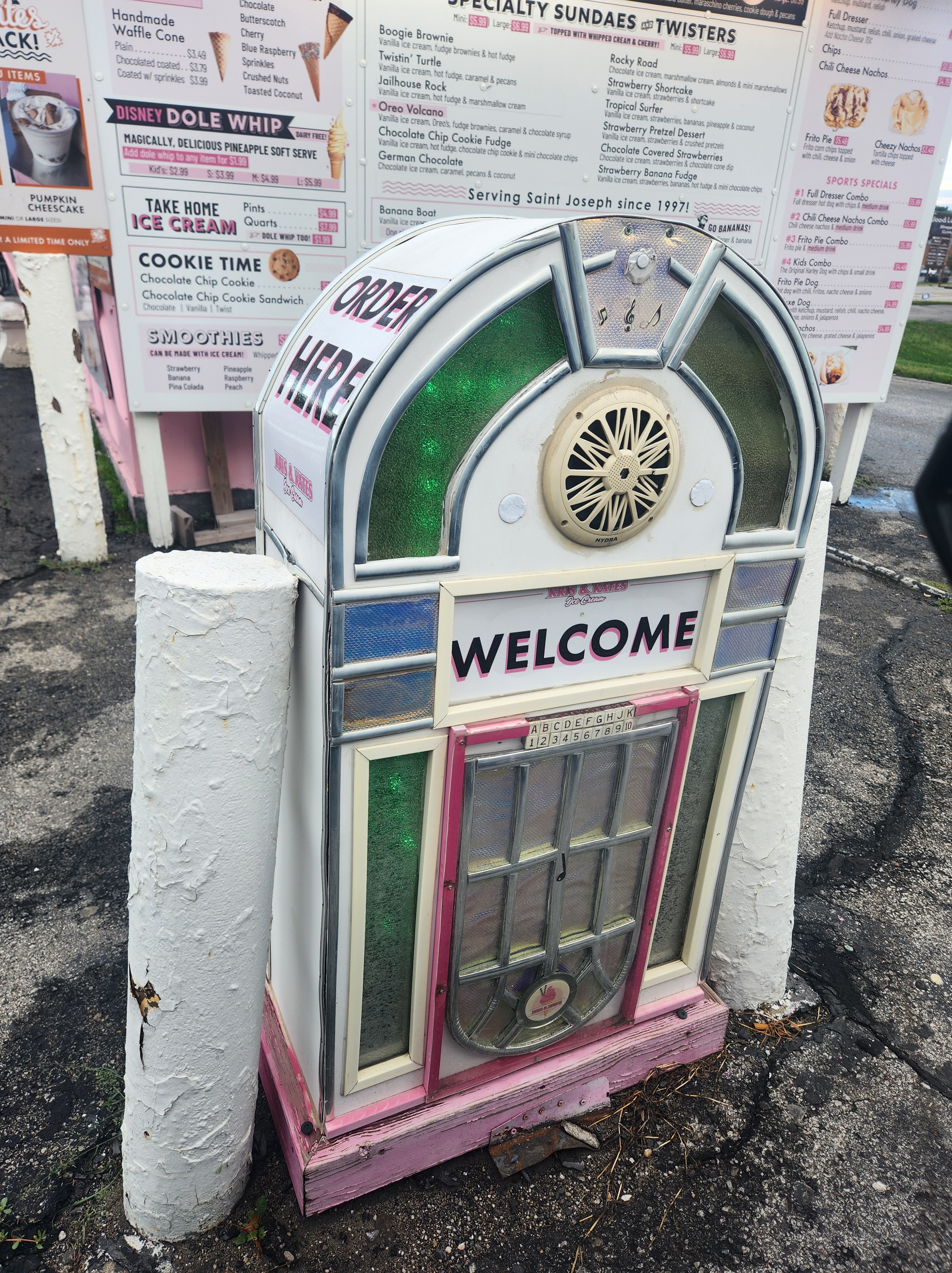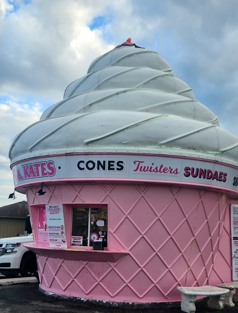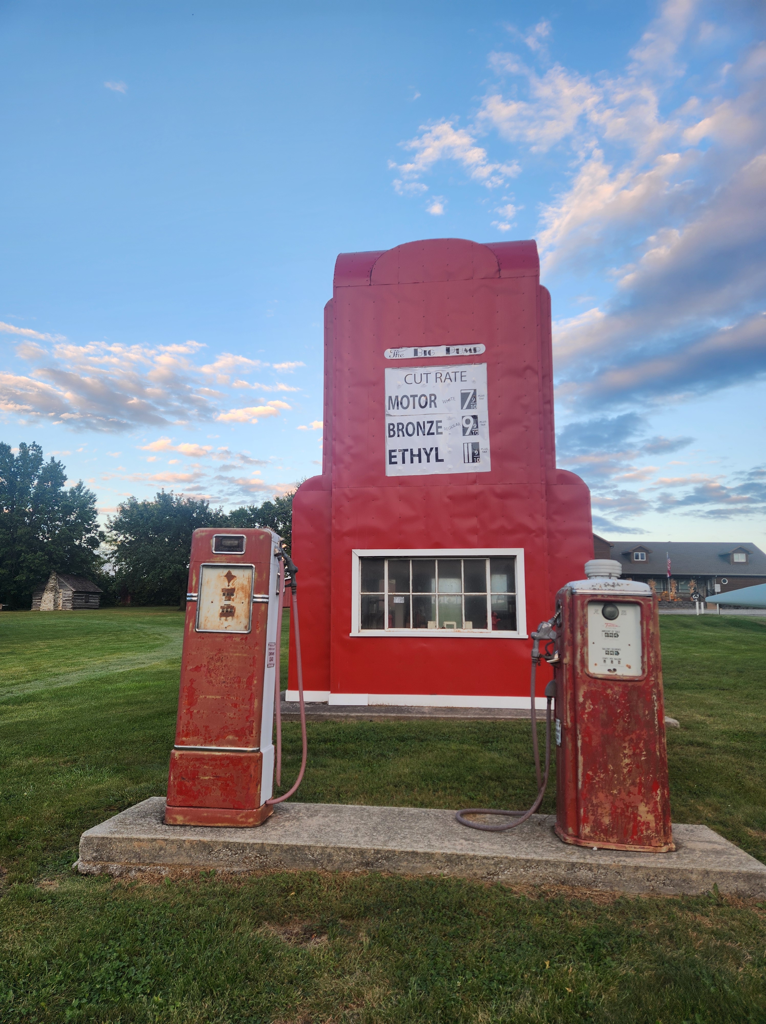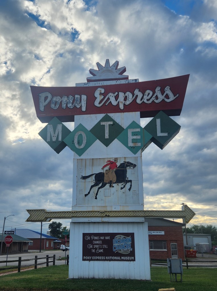 Crossing over the Missouri River, I left Kansas behind and entered Missouri. St. Joseph smells funny to me as the smell of what I’m guessing were pig farms hit my nostrils. Google Maps took me on a unique path to the Pony Express hotel sign, a vintage sign standing where the hotel used to be. On my way out of St. Joseph, I stopped at the building shaped like an ice cream cone and ordered ice cream from a drive through speaker made out of an old juke box. Heading northward, in King City I stopped at the Big Pump, a building shaped like a gas station that actually was a gas station until the gas crisis of 1979. Accompanying the building were two impressive and massive blades from the windmills that dot the countryside. Each blade is almost 142 feet long with a diameter of just under 7.5 feet! The sun was setting as I headed into Stanberry, and despite my readiness to be done for the day, I did stop to take a picture with a metal cow by the side of the road. With camping options limited and darkness settling in, I stopped at a motel in Albany for the night.