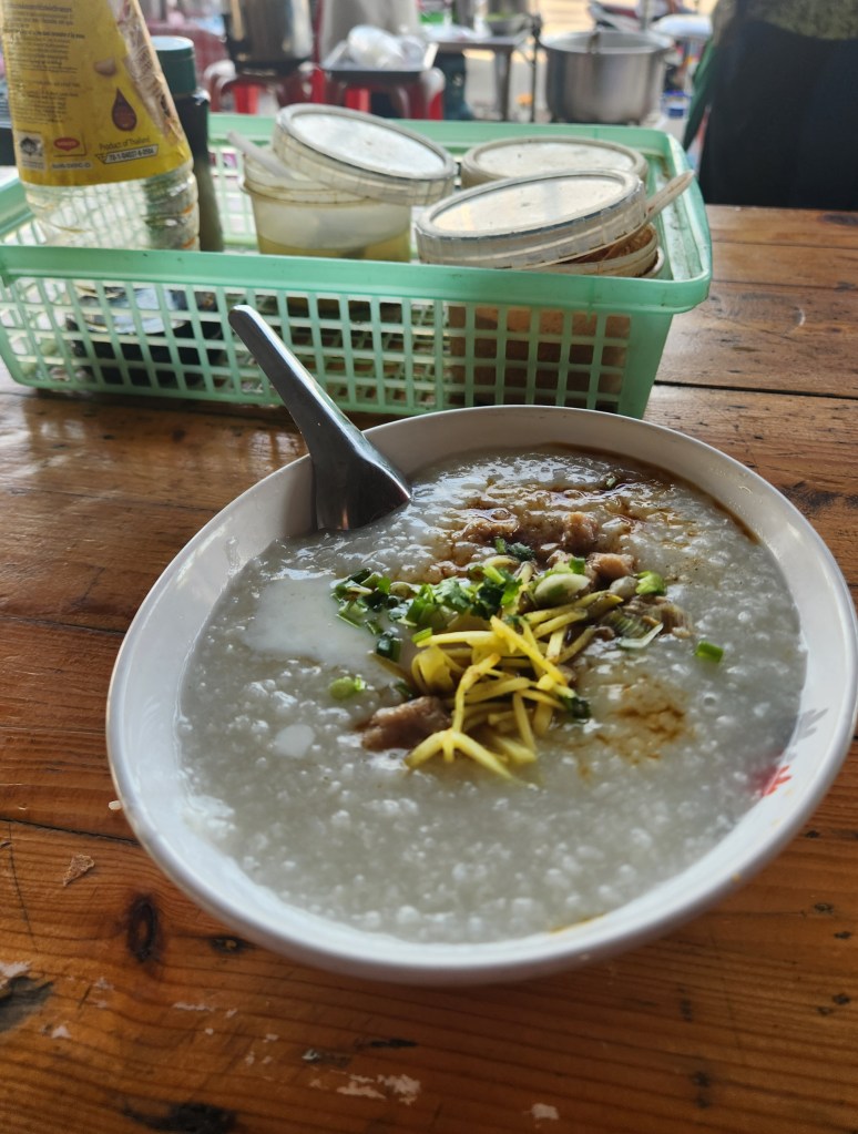 One night in Bangkok was spent at Sinsarvurn Hotel, not far from the airport in the town of Lad Krabang. In the morning, I made my way to the local market. The warm bowl of congee or jok (depending if you want to use the Chinese word or Thai word), a rice porridge with chicken and ginger and other toppings, was the perfect welcome to Thailand.
