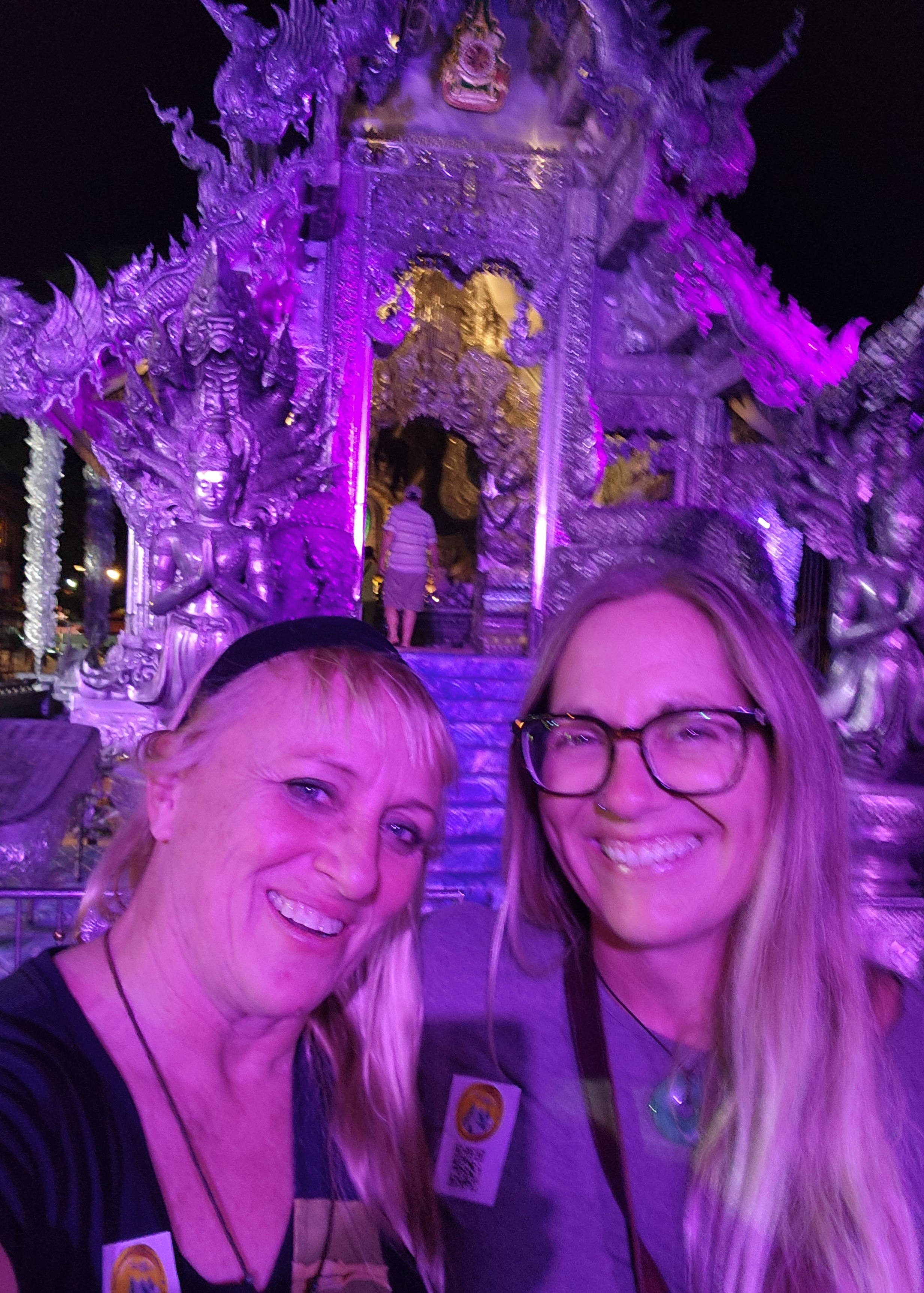 After dinner, we walked the Saturday Night Walking Street for a bit. Having spent more time at dinner, the street wasn’t terribly crowded. A detour to the lovely Silver Temple, which now charges farang (foreigners) 50 Baht to enter, was worth it. We didn’t stay long. As none of us were in the mood for shopping, we abandoned the idea of Walking Street and walked back into town, leaving the temple down a different (soi) away from the crowd of the shopping street. Plus, we had a visit to the elephants the next morning and need rest. Wishing them good sleep and another round of hugs, I grabbed a Grab ride back out to my hotel. My feet were tired from the almost 6 km (almost 4 miles) I had walked that day.