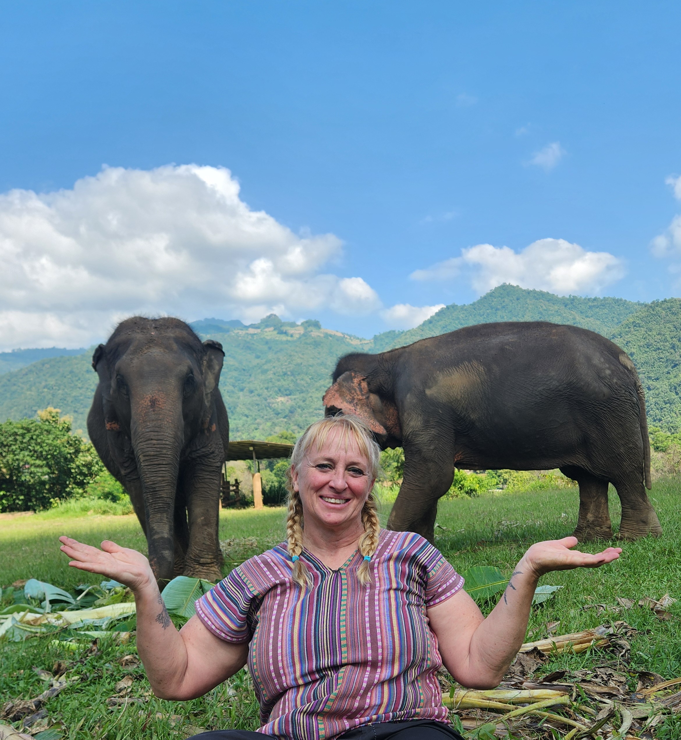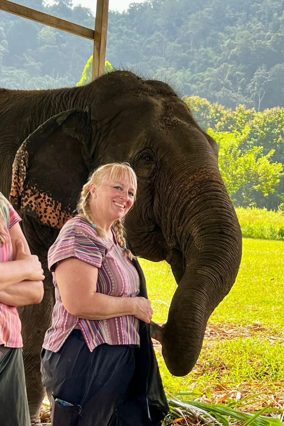 No matter how many visits or how much time I spend with the elephants, it still makes me so happy. My friend Apple, the manager of Happy Elephant Home, was happy to see me, as much as I was happy to see her. Our greeting starting with a boisterous “sawadee kaa” (hello) and the usual conversation in a mix of English and Thai. She is happy and that makes me happy.