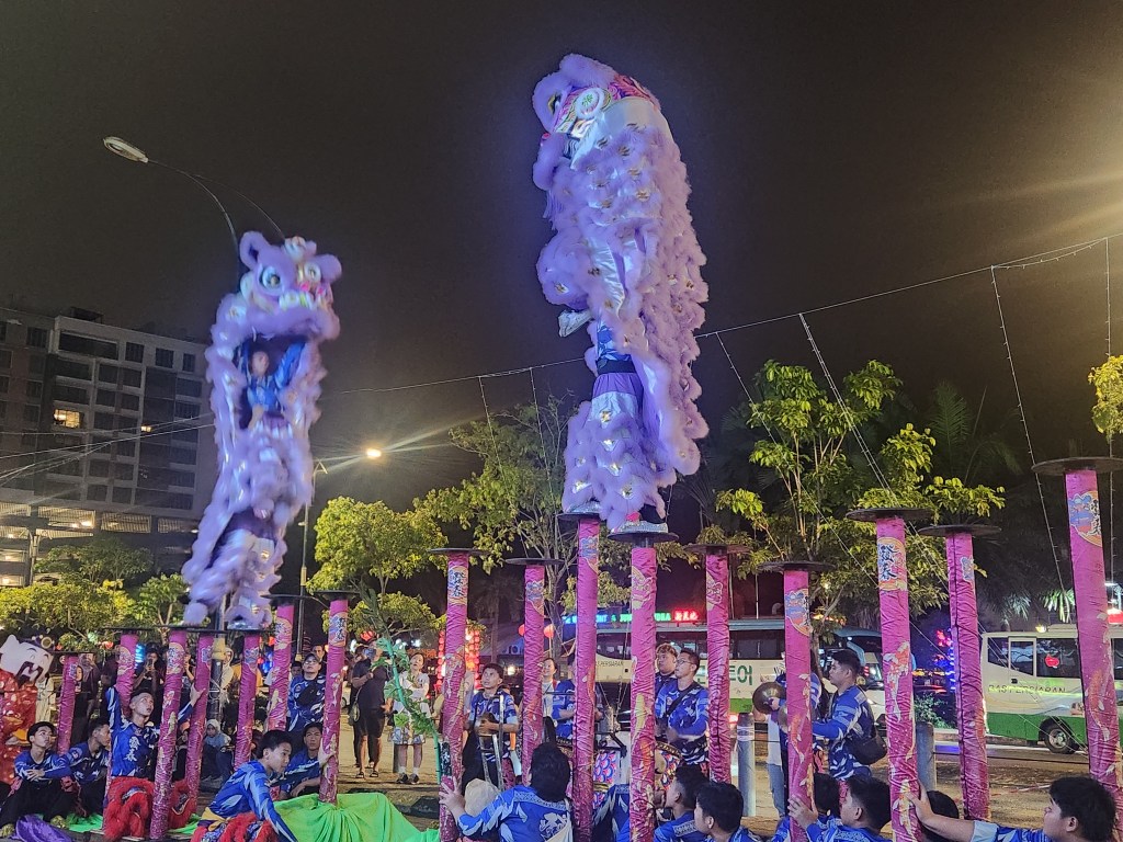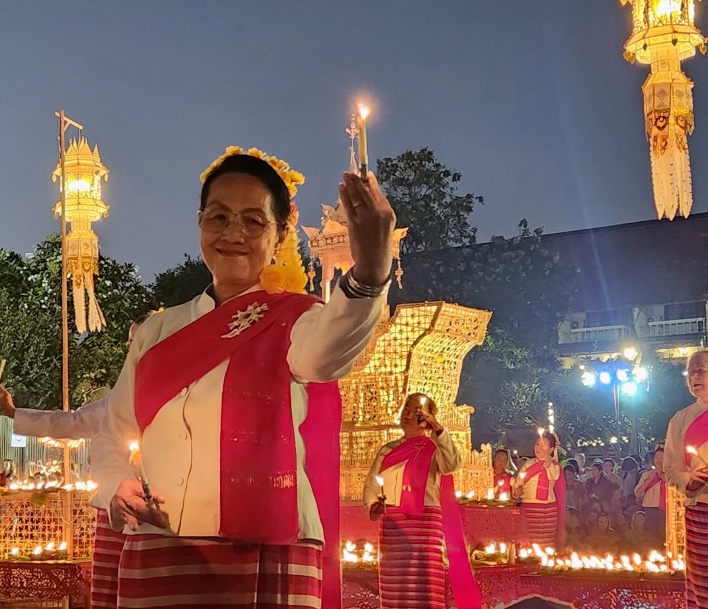 The first night of the festival was the short parade from the Thae Pae Gate to the Three Kings Plaza. The women in the parade carried candles and when arriving in Three Kings Plaza placed them on structures that had been errected there. Then over 100 women ranging in age from 4 to 80 performed a traditional Lanna dance holding candles. For the women it seemed a balance between keeping the candles lit and not getting burnt by the flame or wax. The Three Kings Plaza looked magical glowing with the candles on the structures in the middle.