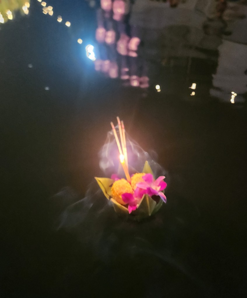 Leaving the bar we continued to stroll along the canal. Miriam, Gabriella, and I purchased krathongs from one of the many vendors and made our way to one of the platforms on the water. We each took our time making our wishes and sent them floating down the canal. Wishing each other good night, Gabriella and Nikki were off on Gabriella’s motorbike, Miriam took a Grab, and I walked back to the Old Town and my guesthouse.