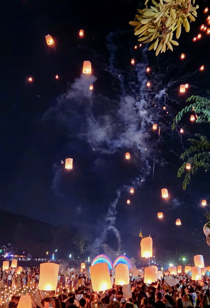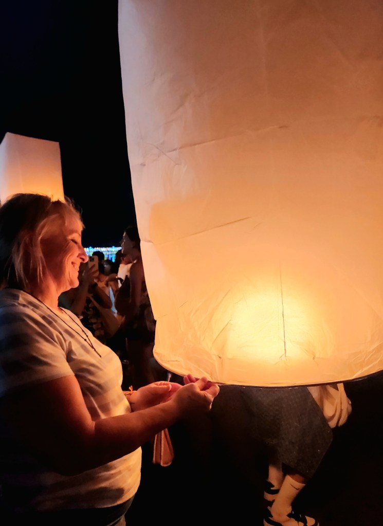We each took turns lighting our khom loy and when it was time to release, only the person making the wish held on to it before letting it go up into the dark sky, joining the trail of khom loy into the heavens.