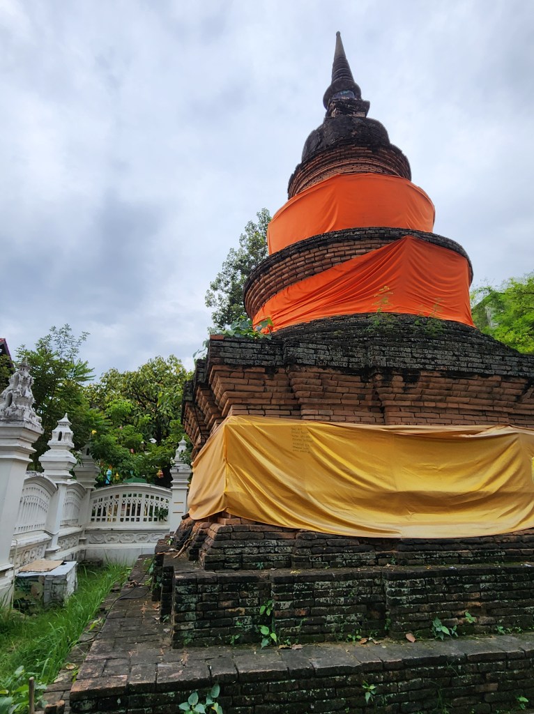 Wanting to go by my favorite temple, Wat Inthakhin Sadue Muang, I headed there first. I fundamentally knew my shorts were going to be a potential hinderance for getting into the temple. I headed there anyway. Proper temple etiquette is to have your shoulders and knees covered. And yes, true to the feeling of so many more farang (foreigners) in Chiang Mai that don’t know the proper etiquette, the temple now has a sign very clearly stating that you are not allowed to enter if you are wearing shorts.