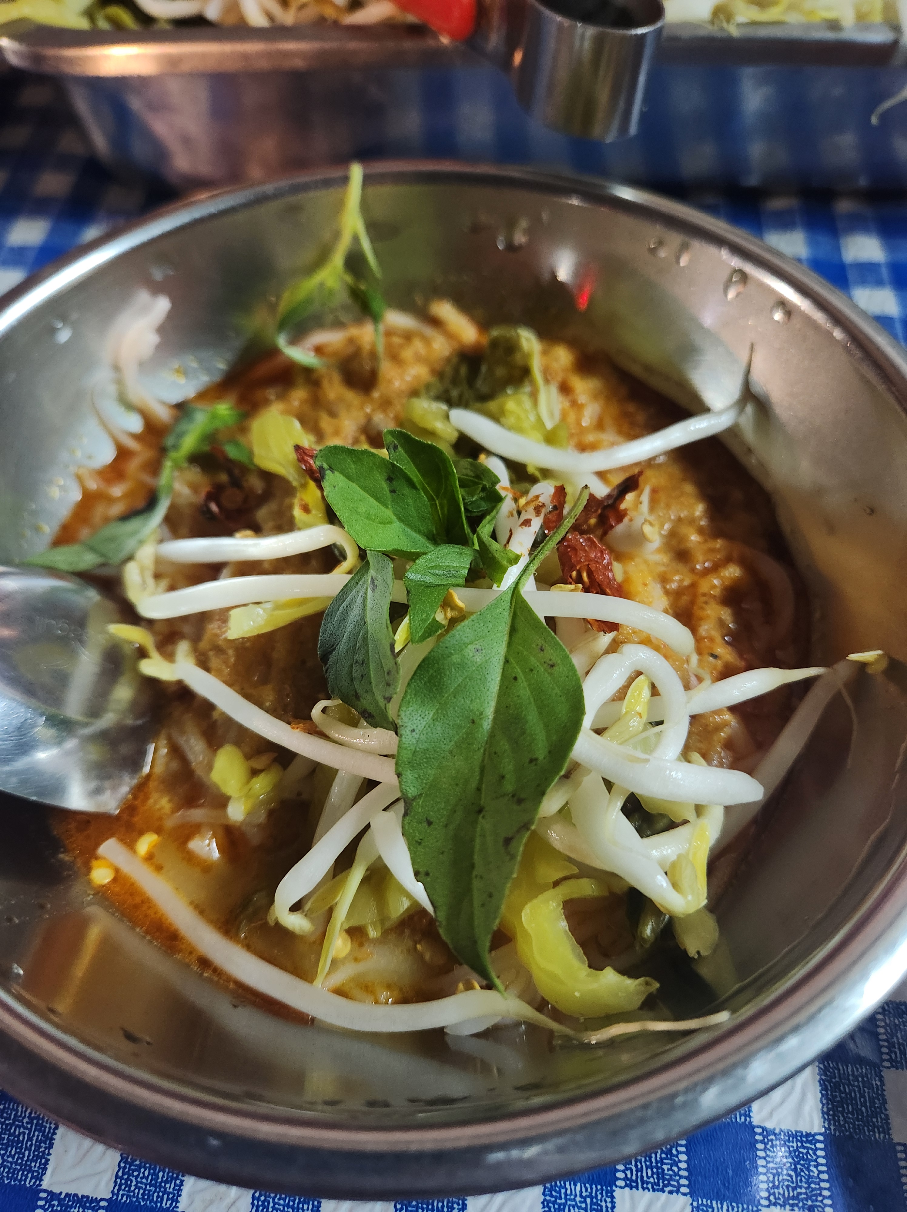Lek and I had been looking forward to seeing each other since I told her I was planning to be back in Thailand. With the weather threatening rain, Lek picked me up in a car, which is highly unusual. For dinner, she took me to a famous Michlin star rated noodle stand called Sankapoi. The noodles are a style that are more specific to Northern Thailand than your average noodle. The curry options are also more tailored to this area and were delicious.