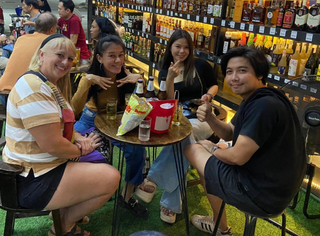 The sai yarng finished and six 750 ml bottles of Singha shared between four of us (Lek wasn’t drinking since she was driving a car), we moved on to the Jazz Café. The Jazz Café is a music venue that doesn’t necessarily feature jazz. In fact, there was no jazz played all evening. More bottles of beer and more food was ordered. We spent the rest of the evening, drinking and laughing. In total, I think we went through nine more bottles of beer. I couldn’t tell you for sure because they never actually let my glass get empty.