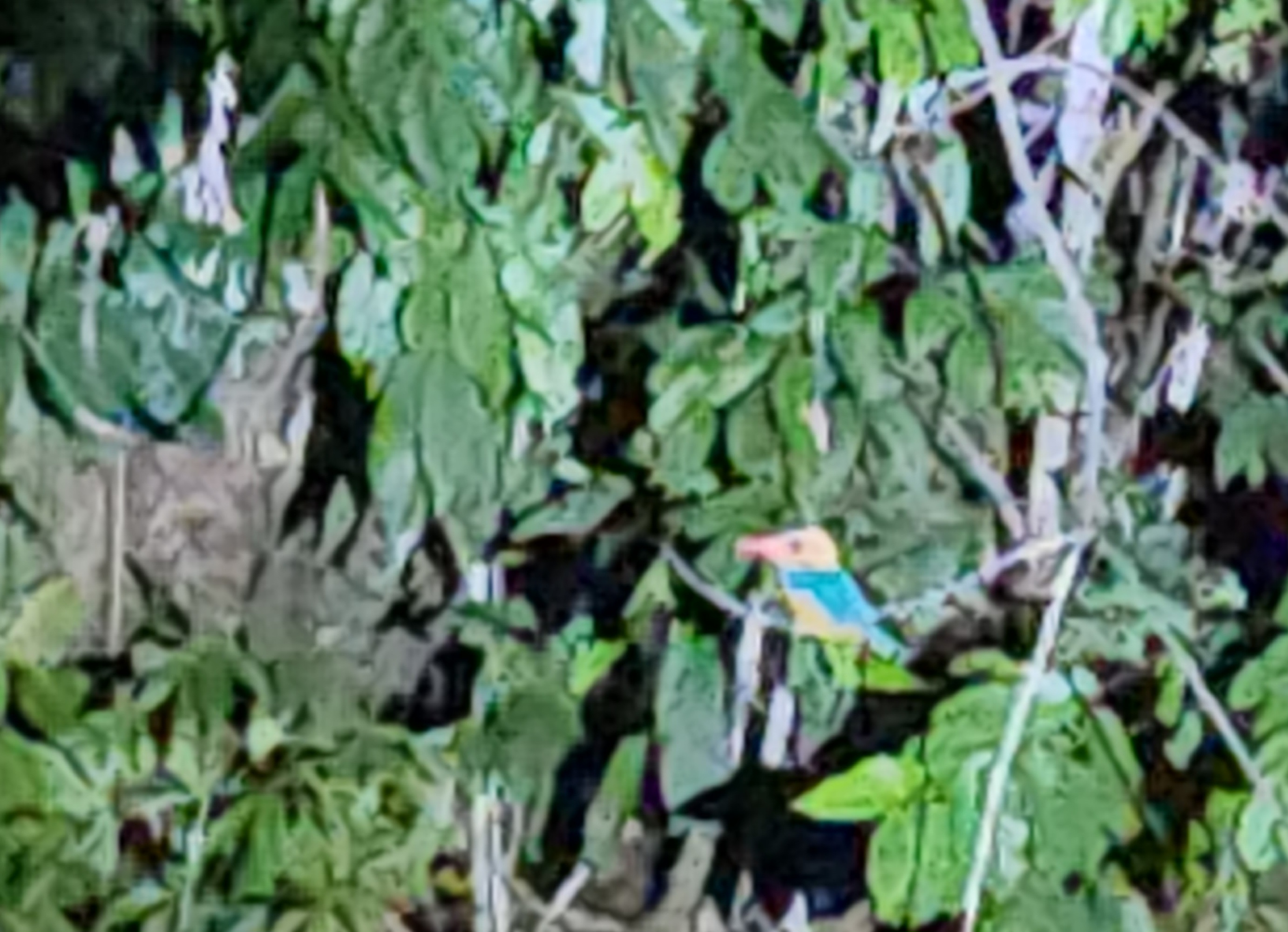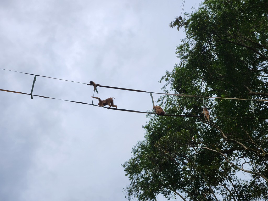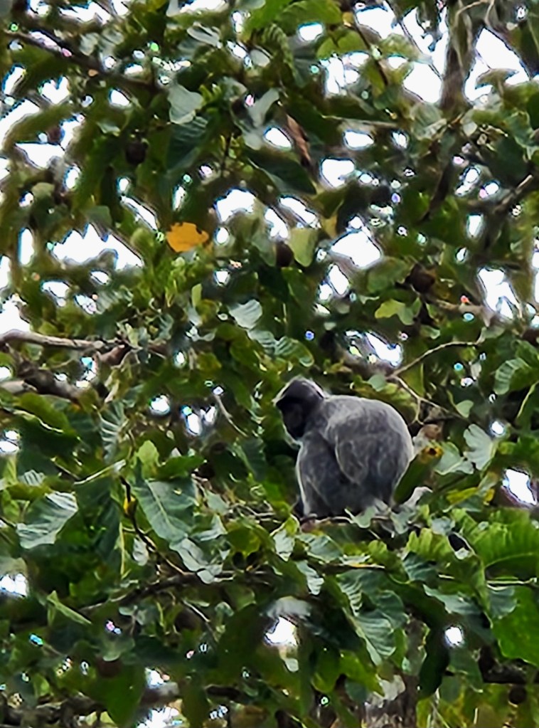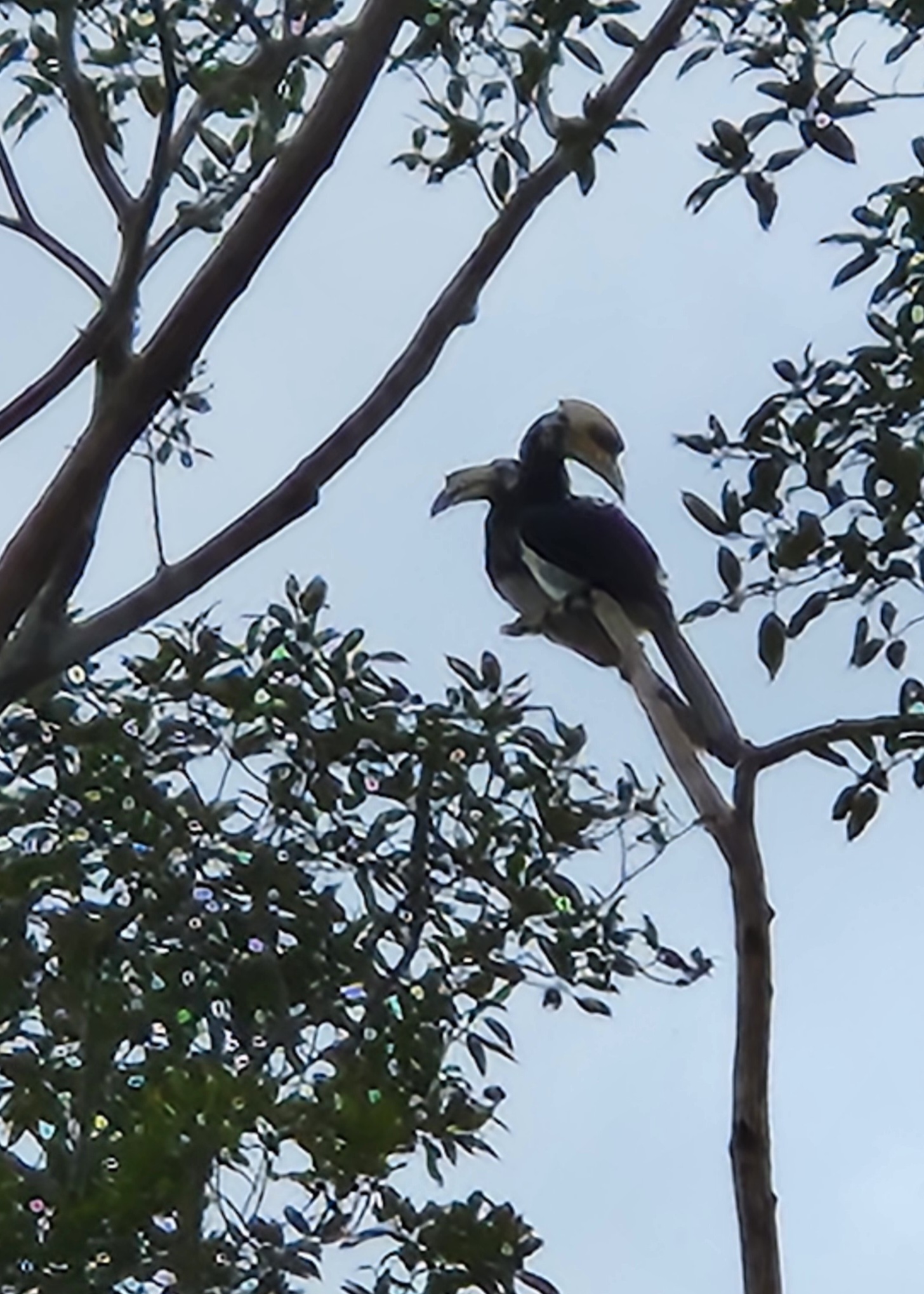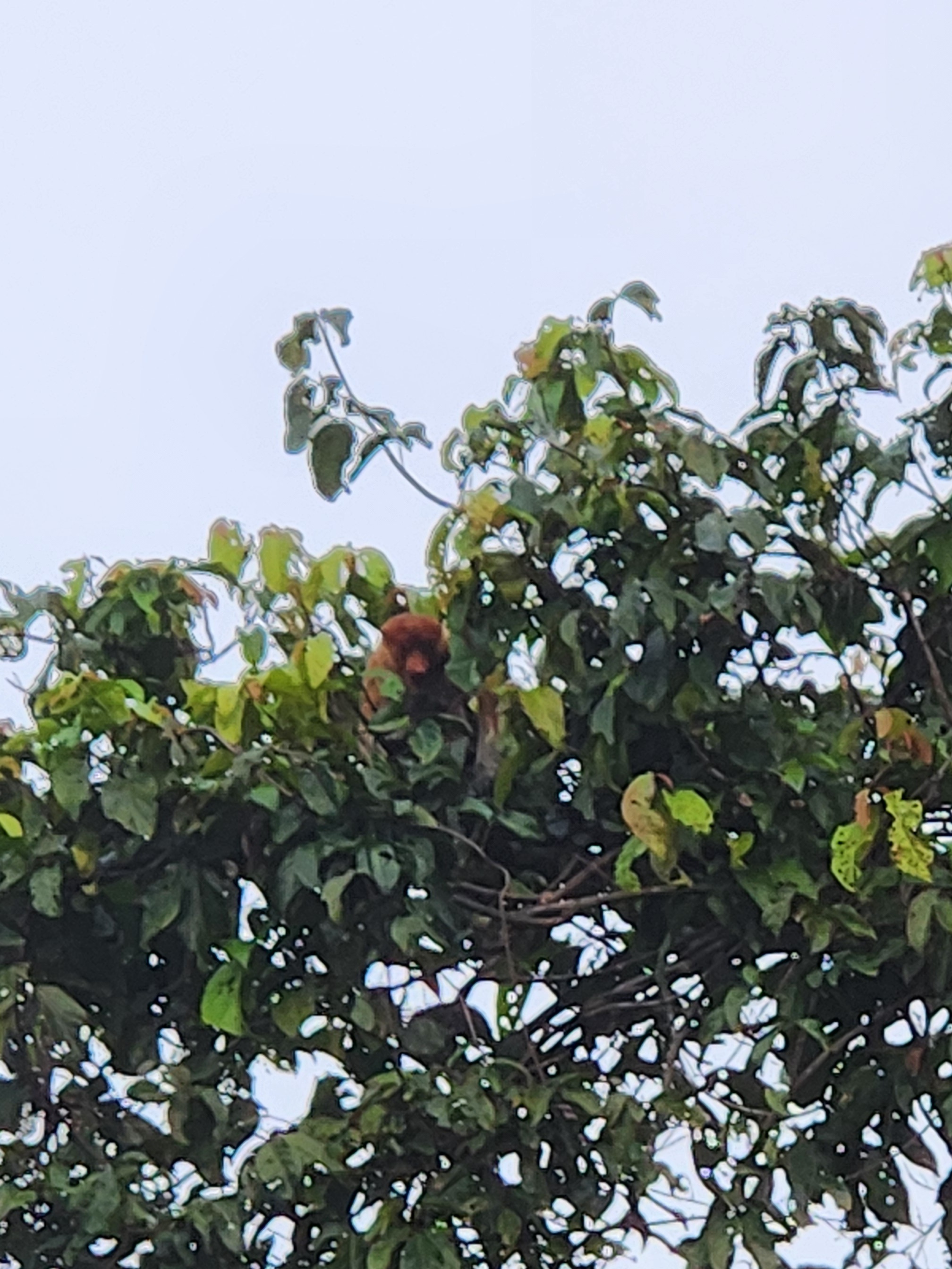 Not being a bird watcher, I took it for granted when our guide told us we were lucky to see the straw head bulbul, a rare bird native to Borneo. We also saw more colorful birds. Including an awake version of the little blue puffball that we had seen sleeping the night before. Another species of hornbill, the White-crested Hornbill (thank you Google), was perched high up in a tree, a bird our guide told us is a dream of most bird watchers to see.
