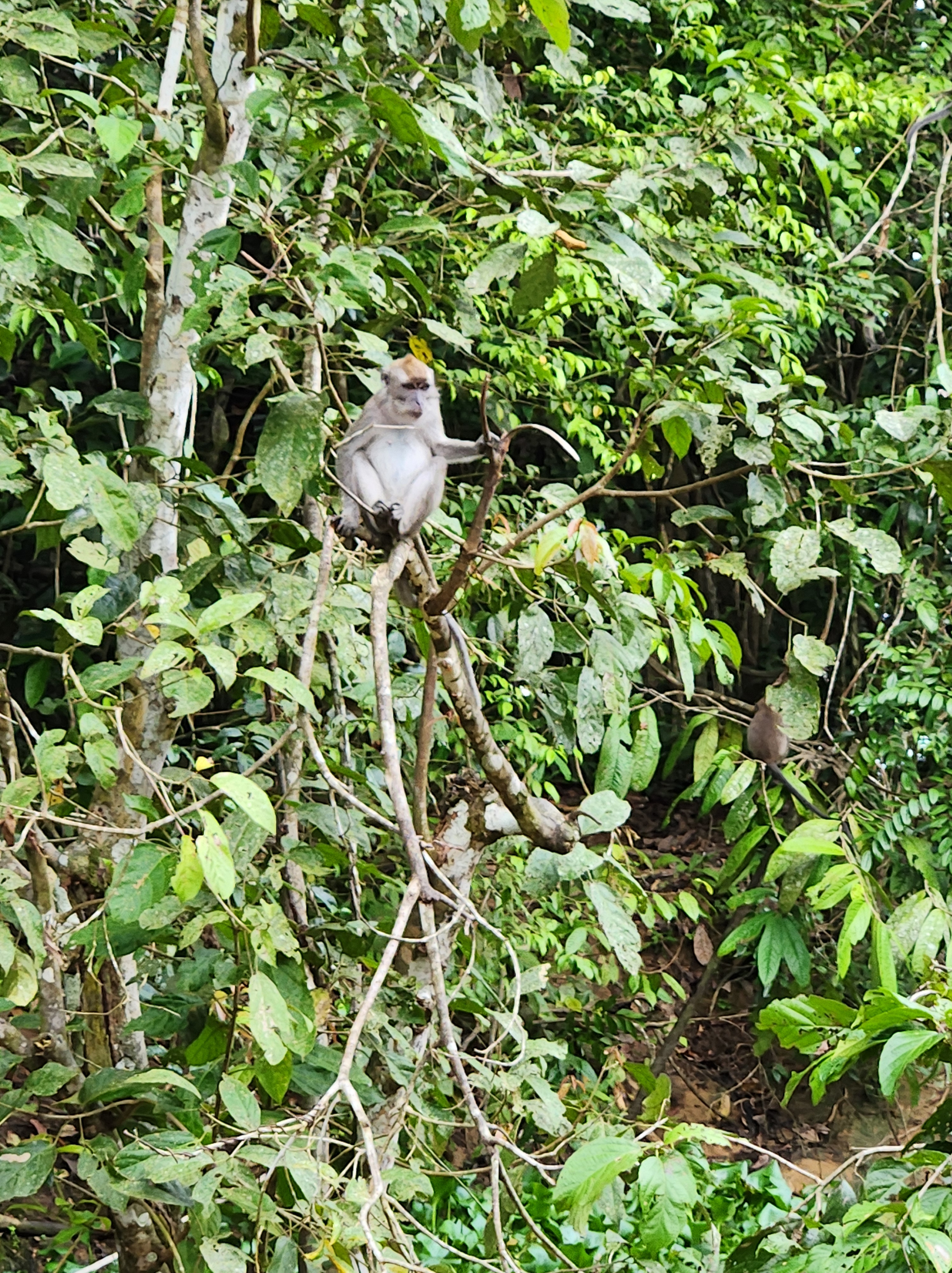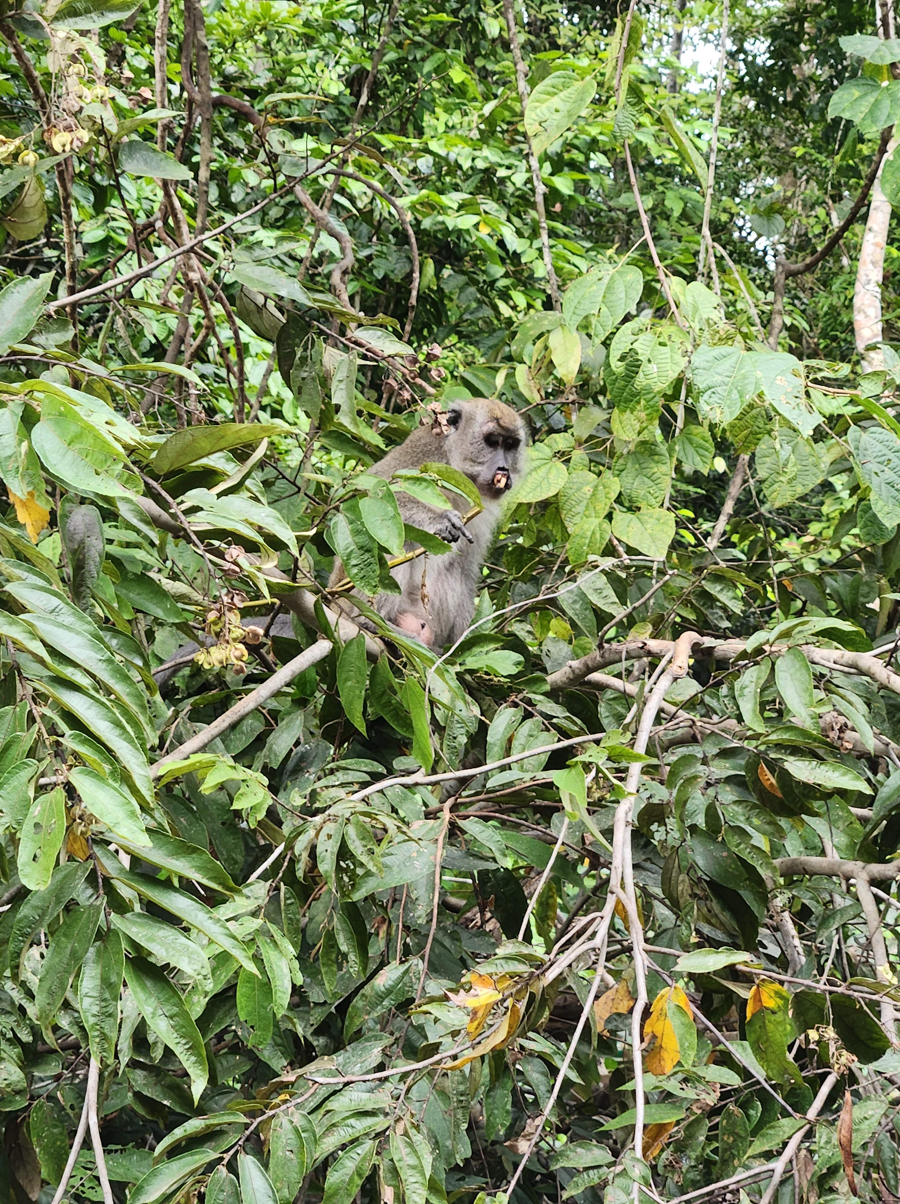 First up on our jungle safari were members of the forest mafia (the long tail macaques) playing in the trees. The long tail macaques are interesting and enjoyable to watch. Definitely not a rare and unique animal though. Ignoring his primate relatives, a small silver leaf monkey was just hanging out in the treetop. The silver leaf monkey is the smallest of the monkeys in the jungles of Borneo. Ten species of monkeys call the jungle home.